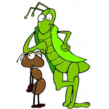 La cicala, dopo aver passato tutta l'estate a cantare, si trovò sprovvista di cibo.Quando giunse l'inverno andò a piangere miseria dalla sua vicina formica e la pregò perché le desse in prestito alcuni granelli di cibo per sopravvivere fino alla nuova stagione.